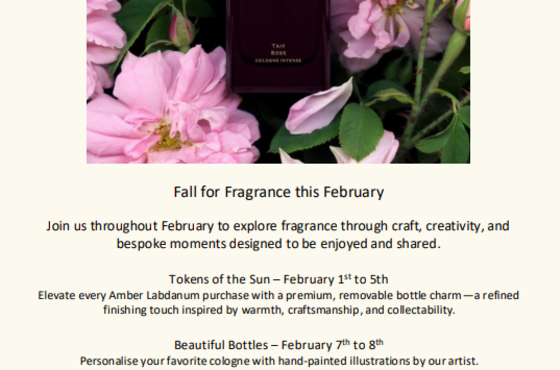Join us throughout February to explore fragrance through craft, creativity, and bespoke moments designed to be enjoyed and shared.