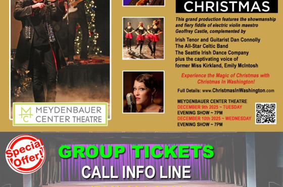 A New Bellevue Tradition, the Christmas Season just won’t be the same after a visit from the Geoffrey Castle’s Celtic Christmas Concerts. This major production features the fiery fiddle of violin virtuoso Geoffrey Castle, energetic and beautiful Celtic dancing with The Seattle Irish Dance Company Dancers, The Geoffrey Castle Celtic Band, Guitarist and Irish Tenor Dan Connolly, and singing sensation and former Miss Kirkland, Emily McIntosh.