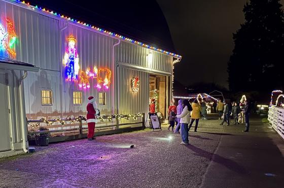 Join Kelsey Creek Farm staff as we turn on the barn lights for the holiday season! This event begins with holiday carols, sheep dressed up in lights, a visit from Santa, and a countdown to turning on the lights. The lighted barns and decorations will provide a festive background for the event’s activities, which includes a special, once-per-year opportunity to go inside the barn to watch the animals eat dinner.