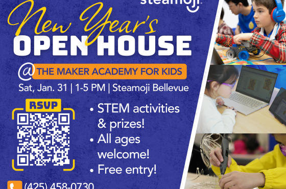 Ring in the New Year with STEAM-powered fun at our Steamoji Bellevue New Year’s Open House! 🎉